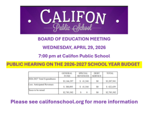 Califon School Board of Education Meeting and Annual Budget Hearing Wednesday, April 29, 2026