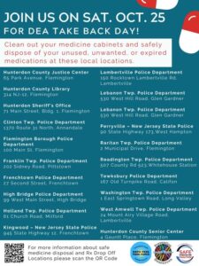 Saturday, October 25 is National DEA Take Back Day which serves as a reminder to turn in unneeded medication for safe disposal. Our own Washington Township Police Department has a drop off location in their foyer, open 24 hours a day, seven days a week, 365 days a year, for anyone who wants to safely drop off medications anonymously at any time. Here are some other locations:
